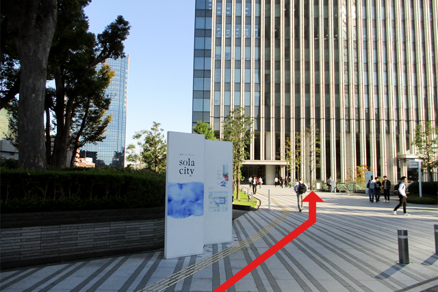 (4)ソラシティのエリアにはいり、建物の方に進みます。