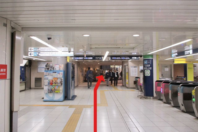 (6)東京メトロ千代田線「新御茶ノ水駅」改札横を通り過ぎ、右方向、ソラシティの方向に進みます。