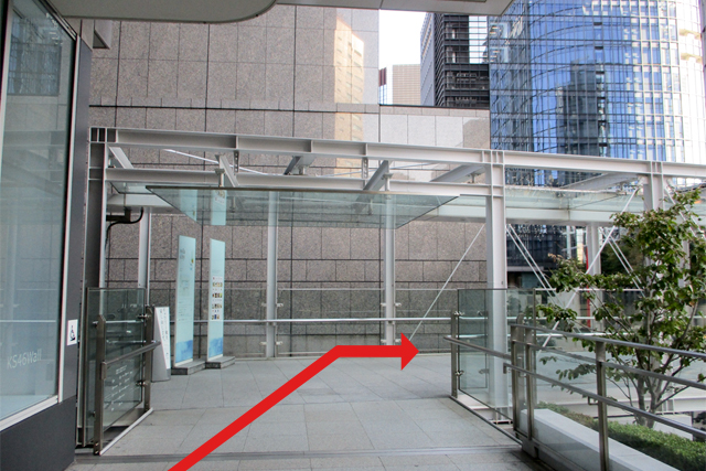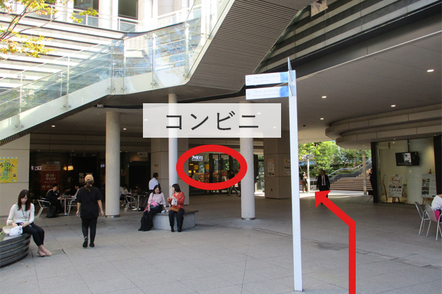 (7)ソラシティの広場に出ます。前方のソラシティ脇(コンビニ)に向かい、通路に進みます。