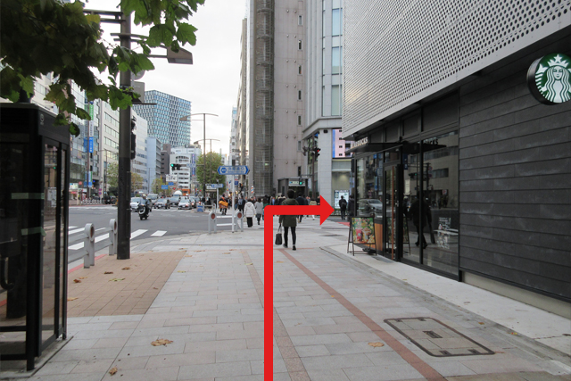 (1)A5出口をご利用の場合は、階段を上がりそのまま進行方向に少し歩いてください。