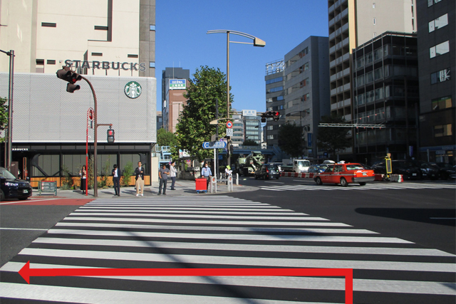 (2)淡路町交差点を渡って右に曲がってください。