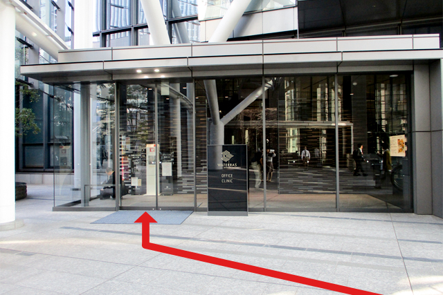 (8)右手にワテラスアネックスのエントランスがあります。エントランスに入ってエレベータで10階が総合受付です。(別途、11階をご案内している場合は、直接11階にお越しください。)