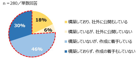 二つ目は「企業価値向上へのストーリーの構築」です。「ストーリーを構築していない」とする企業の割合は76%で4分の3に上っており、現状では目的達成に向けたストーリーを描くことなく、人的資本経営に取り組んでいる企業が多いことがうかがえます。