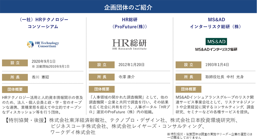 MS&ADインターリスク総研株式会社(代表取締役社長:中村光身)は、一般社団法人HRテクノロジーコンソーシアム(代表理事:香川憲昭)及びHR総研(ProFuture株式会社/所長:寺澤康介)と共同で、人的資本経営と開示に関する企業・団体等の取組状況を大規模調査する「人的資本調査2022」を昨秋に実施いたしました。